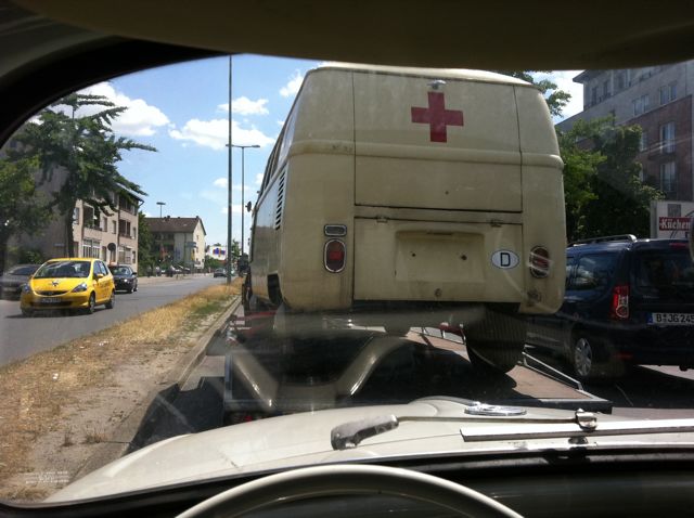 zum glück war john bestens ausgestattet: erstmal luft mit dem kompressor auf die alten lumpen, dann die rangierroller unter die vorderräder und mit ner starren abschleppstange raus aus der box. wir mussten den bus die engen kurven aus dem 1.geschoss nach unten bringen. dat war ne spannende sache...s.videos auf youtube......