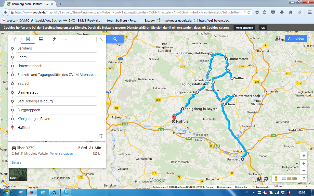 ...bis wir dann endlich in Hassfurt den Womostellplatz der Naturfreunde, direkt am Main erreicht haben zum Erholen und Ausklingen des Tages