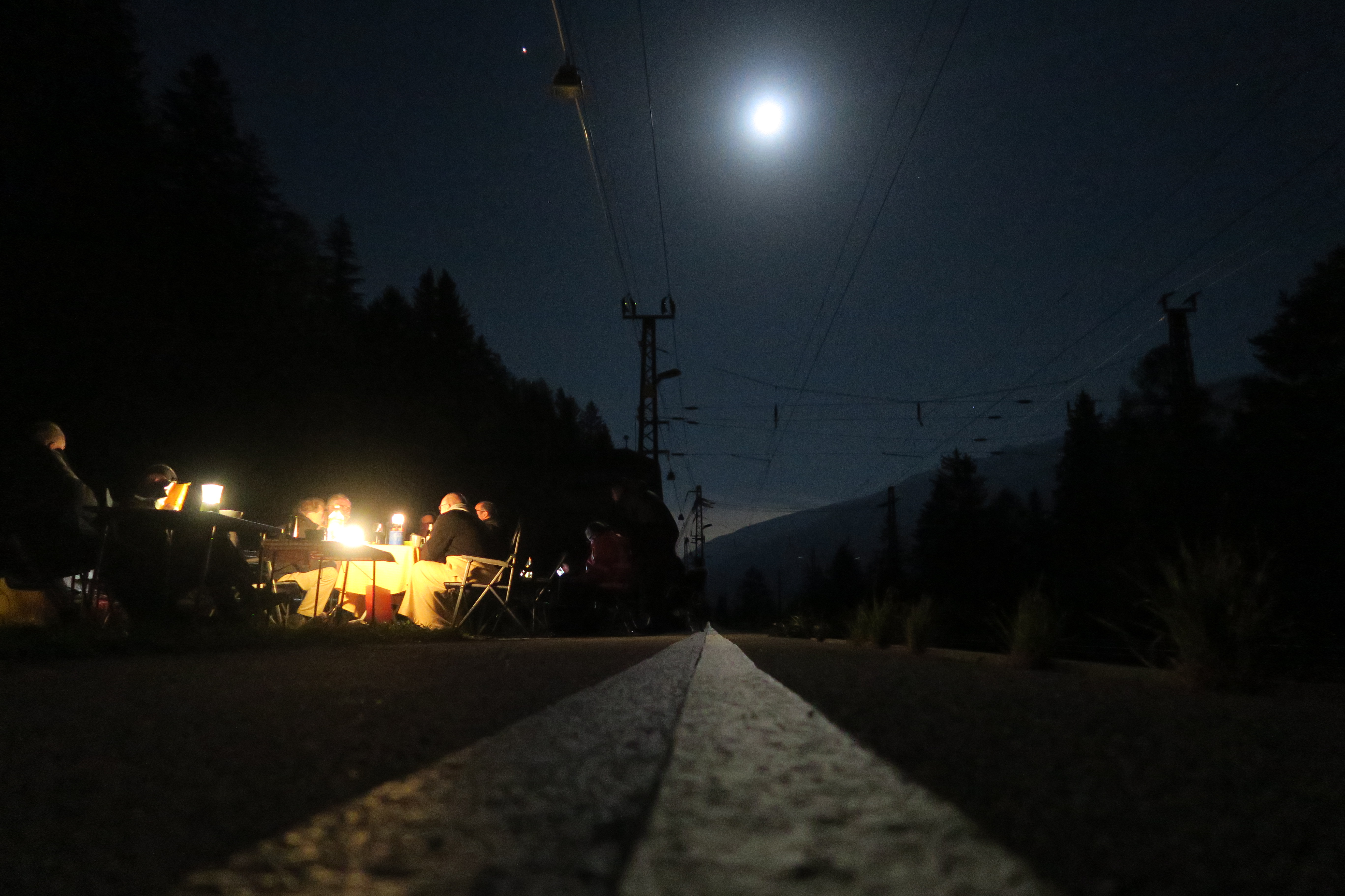 Der geselligste Outdoor-Abend der Reise auf dem Bahnsteig Plenk