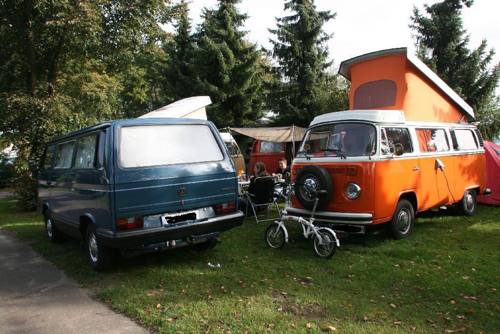 Johaa, der Harald! Nachdem er an unserer kleinen Wagenburg erst vorbeigefahren ist und uns nur den Bulli-Popo gezeigt hat, fand er dann doch zu seinesgleichen!Harald hat geschrieben:Soooooo, bin auch wieder da. Habe mich gestern Abend noch ganz spontan entschieden, als mir bewußt wurde, daß die Saison zu Ende geht![]()