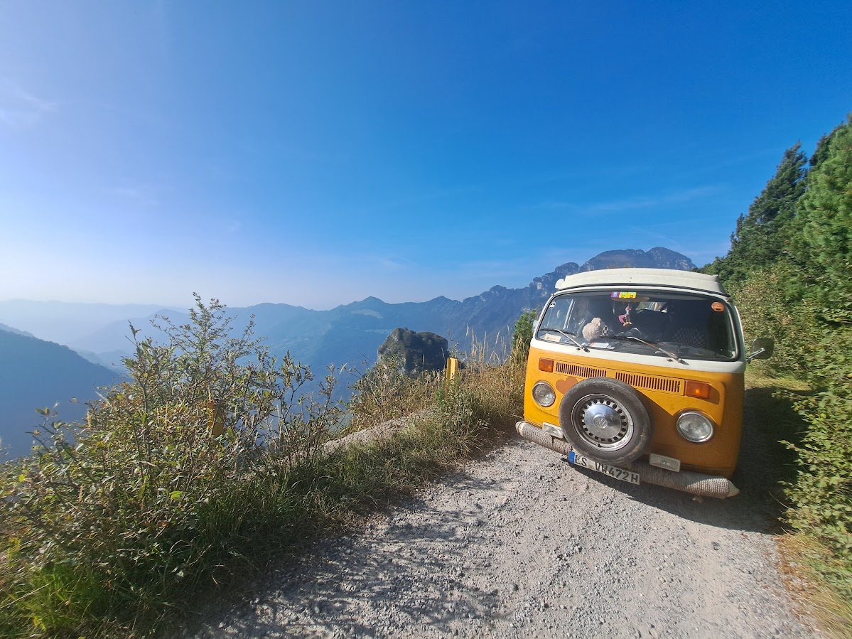 Wir haben den Bus am Parkplaz am Monte Baldo abgestellt, welcher ziemlich voll und etwas abschüssig war. Von dort aus sind mein Schwager und ich zu einer Wanderung zu einem Aussichtpunkt aufgebrochen. Leider hatte sich zwischenzeitlich der Bus, trotz angezogener Handbremse und eingelegtem Gang auf dem Parkplatz selbständig gemacht und dabei mehrere dort abgestellten Fahrzeuge beschädigt.