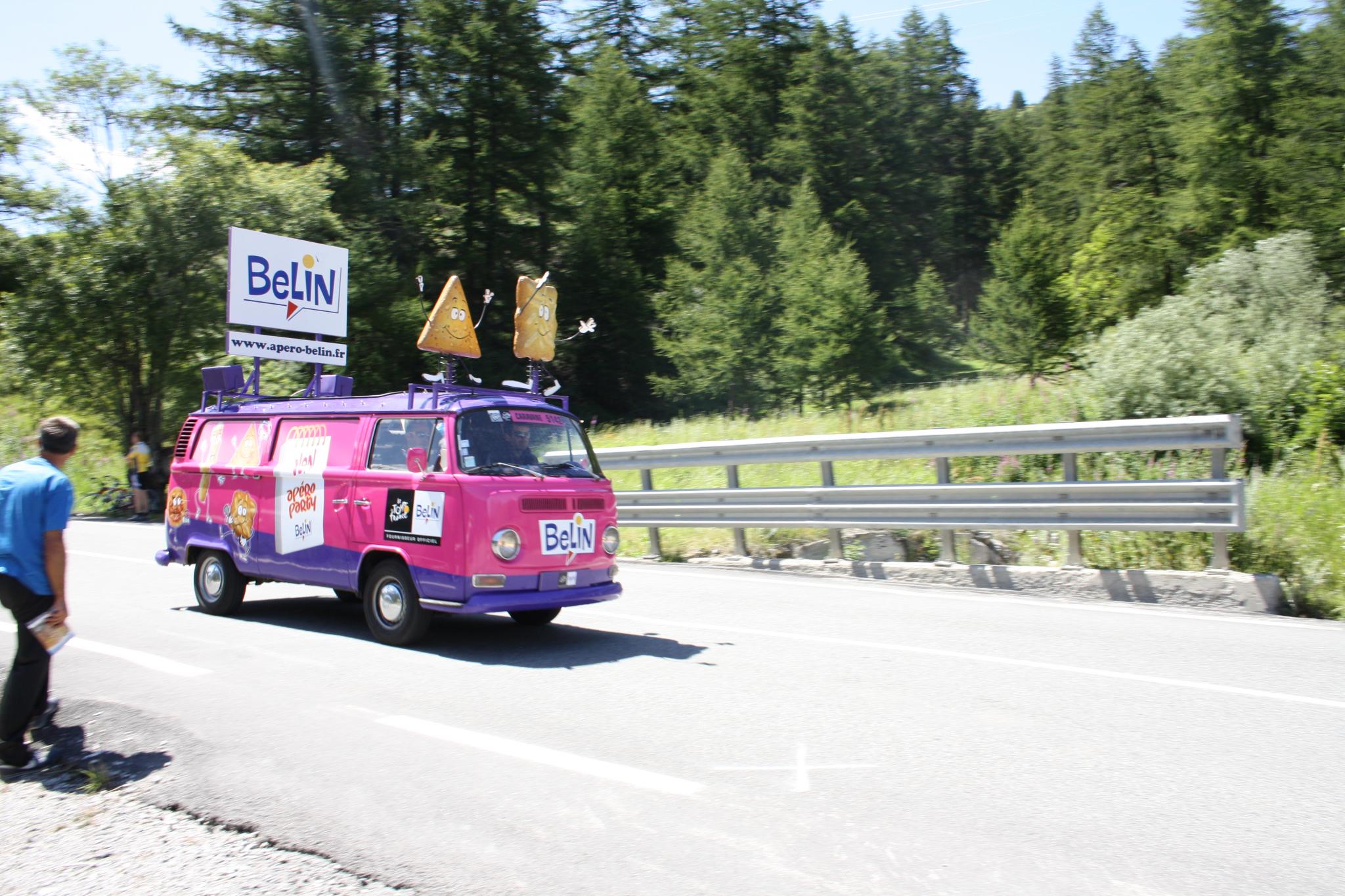 Vor den Profifahrern fährt ein gewaltiger Werbekonvoi der Sponsoren: