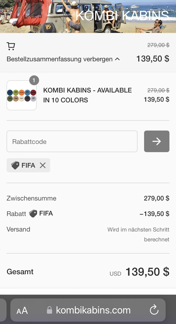 Aktuell gibt es eine Aktion von Kombi Kabins, falls da jemand Interesse hat. Mit dem Promocode Fifa bekommt man 50% auf das Heckzelt.