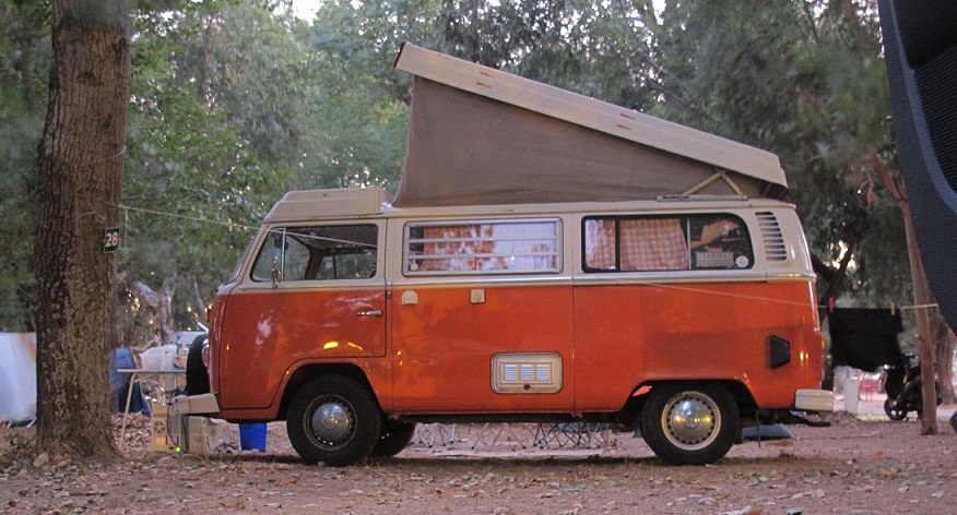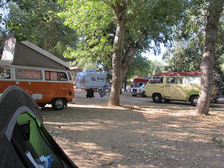 Toll fand ich auch das Zusammentreffen des T2s (aus Algajola), des T3s und des /8ers. Letzter hatte nicht nur das Kanu auf dem Dach, sondern war auch als Gespann mit zeitgenössischem Wohnwagen unterwegs.