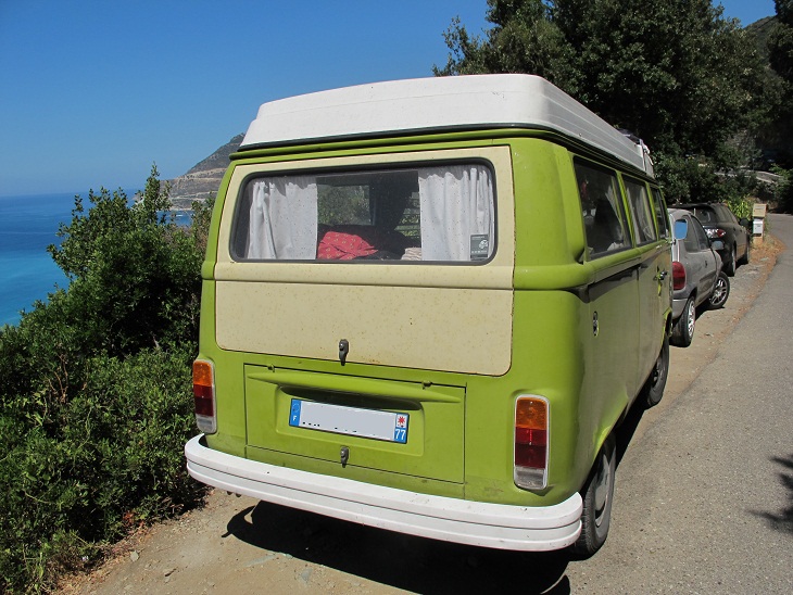 Hier mal drei Bullis auf Korsika 2012. Der weiß-orangene stand neben uns auf dem Campingplatz in Algajola. Die beiden anderen habe ich am Asbest-Strand in Nonza fotografiert.