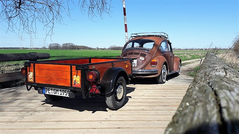 Zur Probe habe ich den Anhänger mal schnell hinter den Käfer gehängt und ein paar Bilder gemacht.