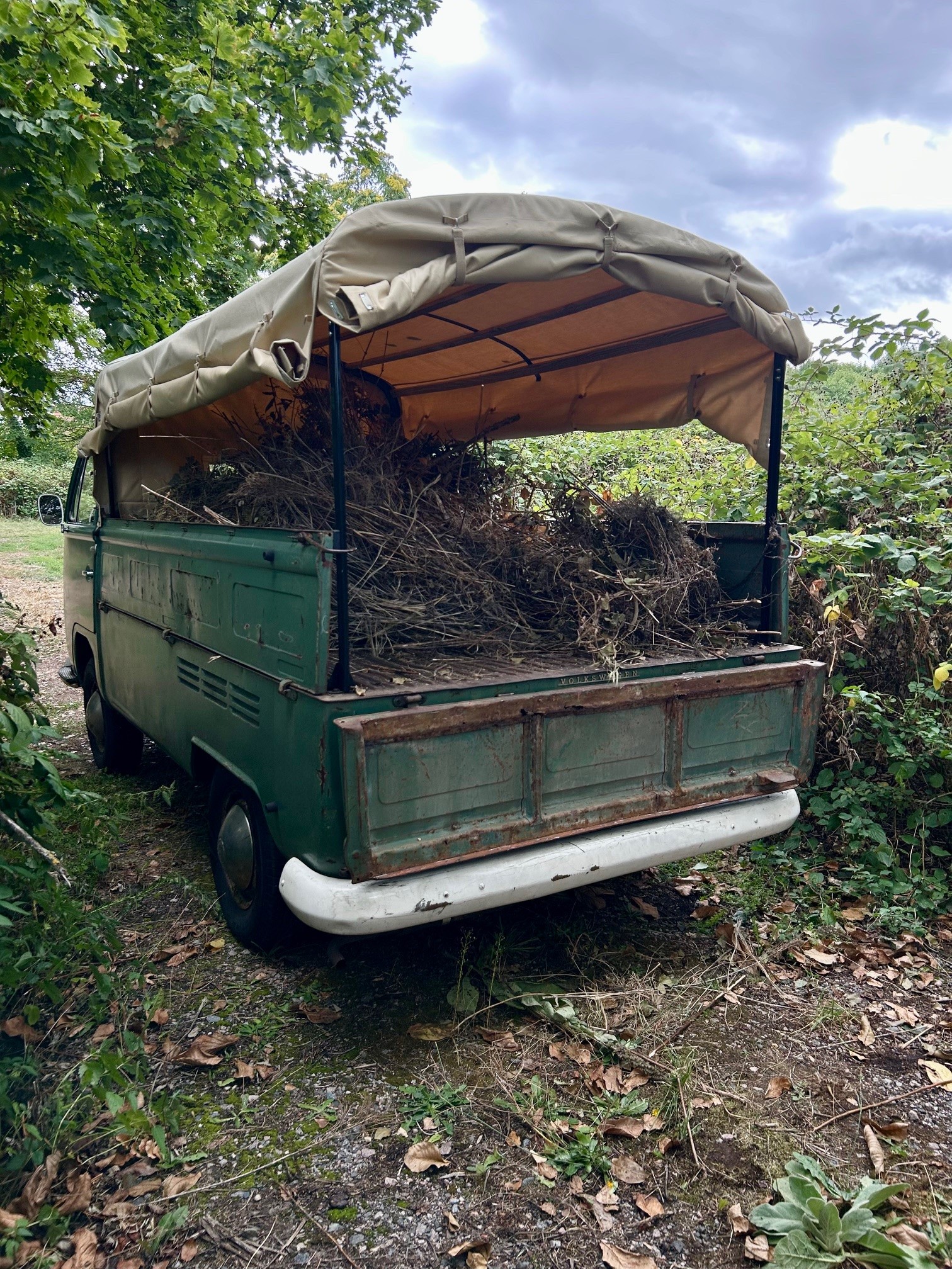 Den Baum hatten wir im Februar fällen müssen und steht mitten in einem Feld. War skeptisch ob ich das da raus bekomme, aber der T2 ist ja schön geländegängig.