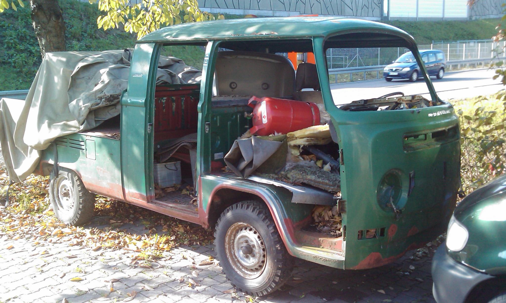 Am Samstag in nem Hinterhof gefunden. T2ab Doka, Zustand: rettbar, Investitionen ohne vorhandenes Teilelager: immens
