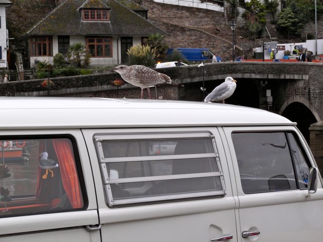Da hätte ich auch zwei schöne Bilder mit Viechern auf und um den Bulli herum.