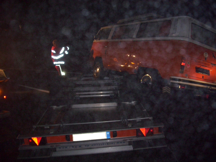 Anhand der Tatsache daß bei diesem Nummernschild der blaue Balken rechts ist, unterstelle ich hier den größten anzunehmenden Unfall im Leben eines T2-Transporteurs.