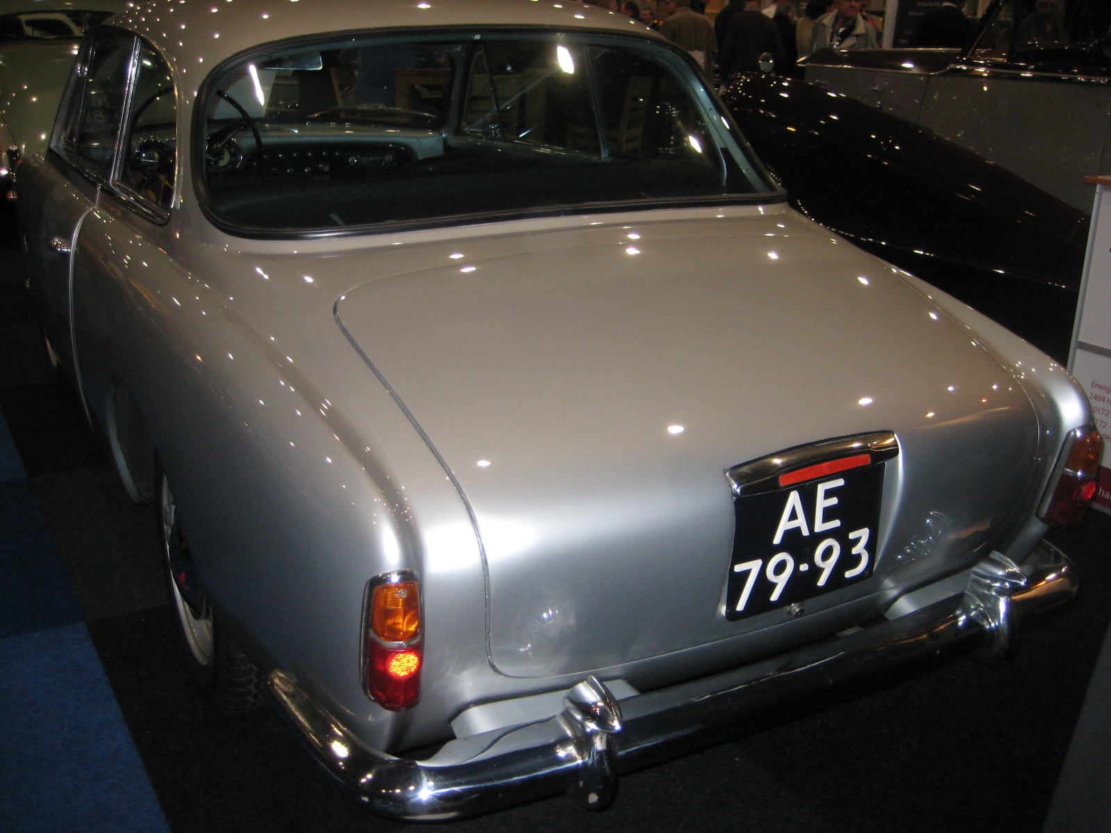 Erinnert mich an Lancia Aurelia und Volvo 121 - beides falsch, aber 60er Jahre dürfte stimmen. Das Wurzel-Symbol am Kotflügel sagt mir momentan nichts. Europäer?