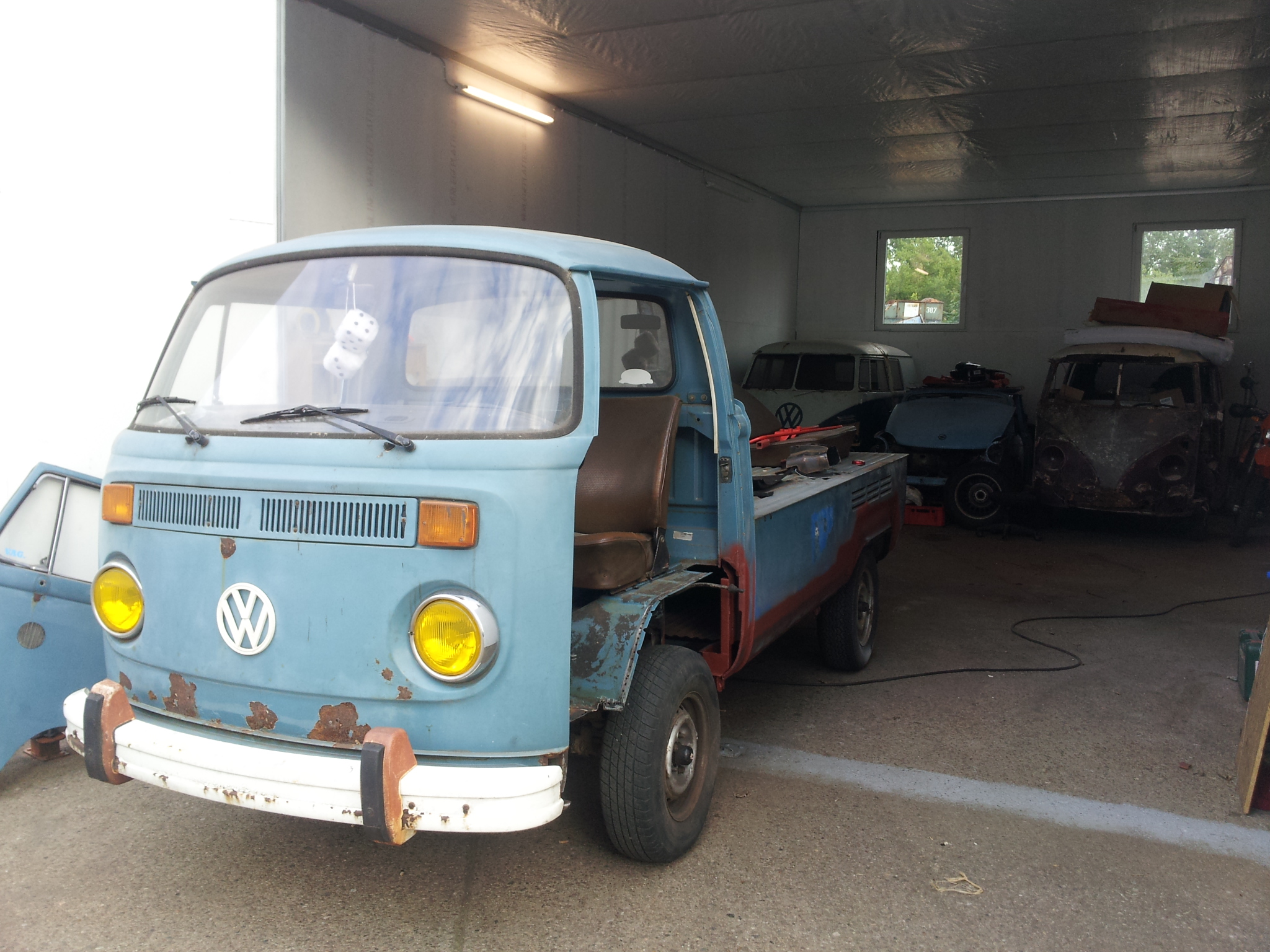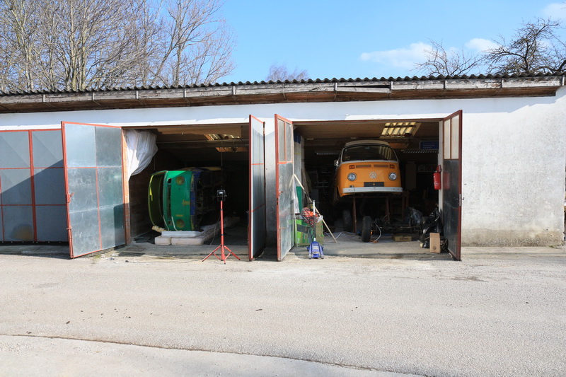 Meine Garage...gestern wieder was an meiner Pritsche gemacht, im Hintergrund meine T1 Busse und der Trabi...