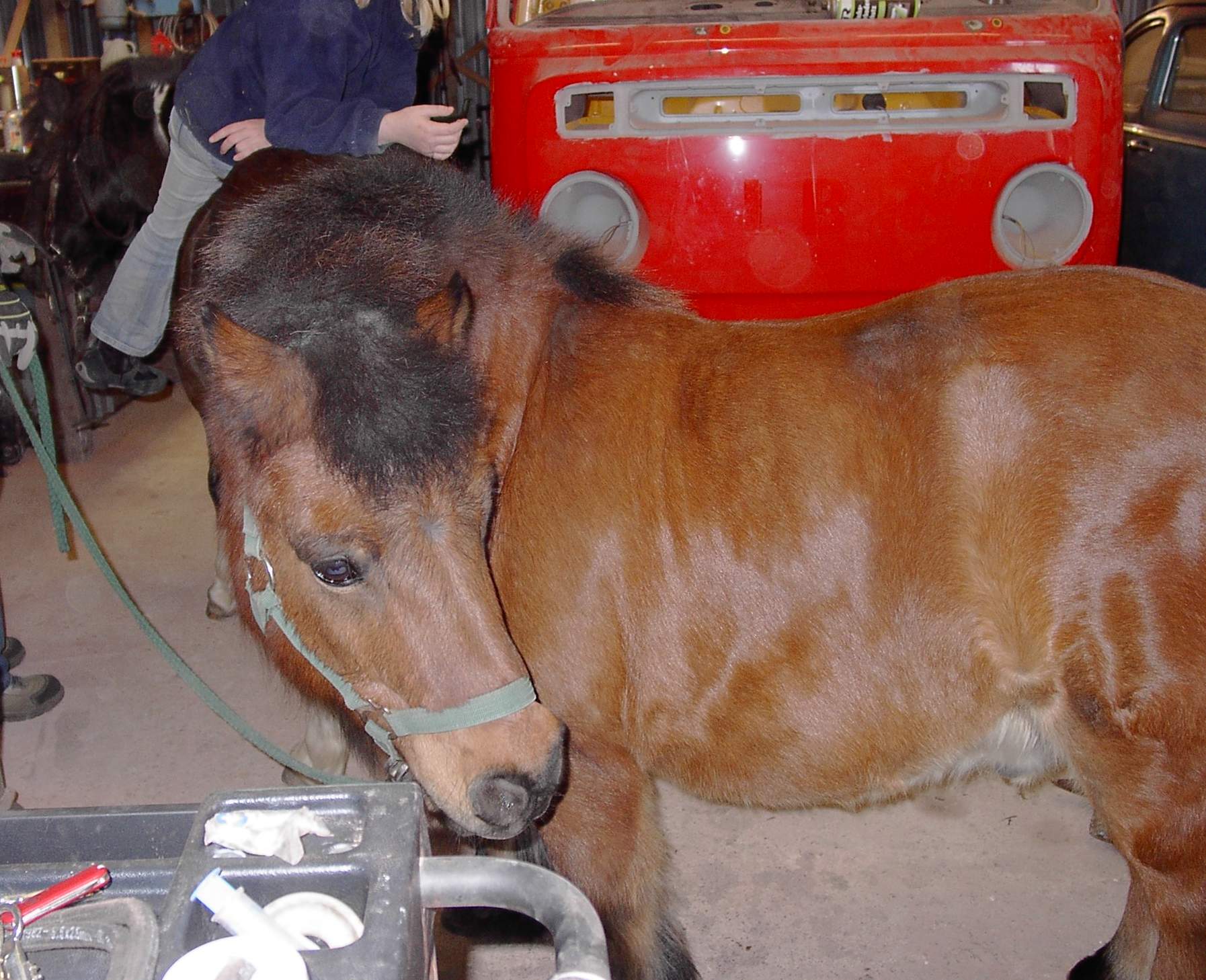 Unsere beiden sind zwar nur widerwillig durch, die für Ponys nicht gut riechende, Halle. Dann an dem alten Trecker vorbei, ja und dann vor meine Pritsche...