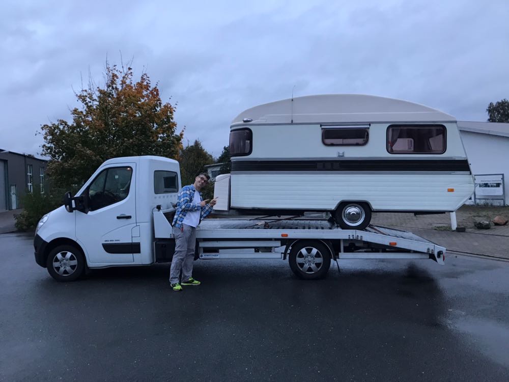 So, zum Bulli habe ich mir nun noch die nächste Baustelle zugelegt. Hier ein Bild meines Wohnwagens den ich nun über die nächsten Monate kernsanieren werde. Wir haben ihn in der Nähe von Hannover abgeholt und ich bin froh dass das Häuschen auf dem Fahrgestell geblieben ist. Dass der Boden marode ist und komplett neu mus war uns klar, aber wenn man dann sieht wie die Kabine auf- und abwippt während das Fahrgestell sich keinen mm bewegt...