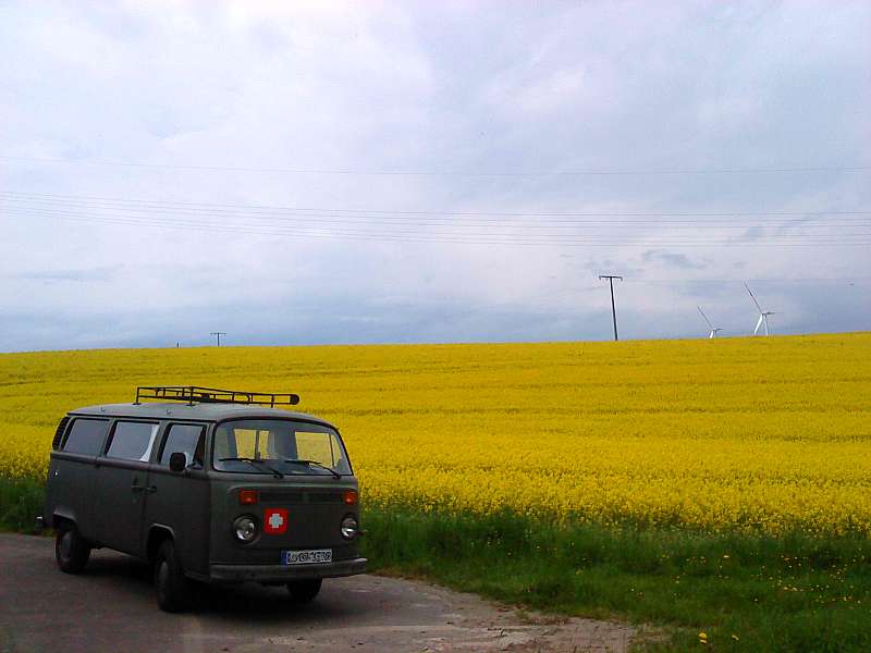 neben einigen T3-womos (sogar einer mit polnischem kennzeichen) ham wir immerhin zwei T2 gesehen (1x blau, 1x petrol/weiss), und das obwohl MKT war!