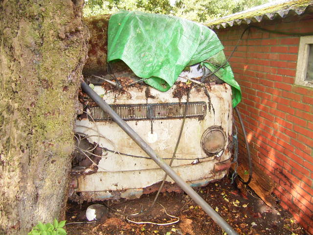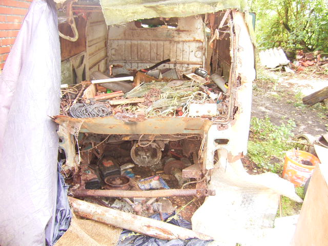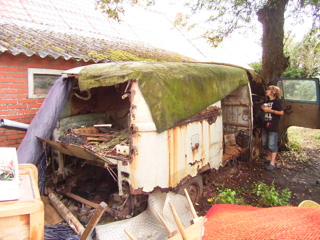 Letzte Woche rief mich noch ein Bekannter an ob ich noch Teile von einem T2 gebrauchen könnte! Der alte Bauernhof musste entrümpelt werden. Bei der Besichtigung bot sich folgendes Bild... Da war nicht mehr viel zu retten; sogar die AHK war hoffnungslos verrostet . Ein paar Kleinteile; Schalter usw. waren noch brauchbar. Das Fz. hat jahrelang unter feuchten Teppichen gestanden.