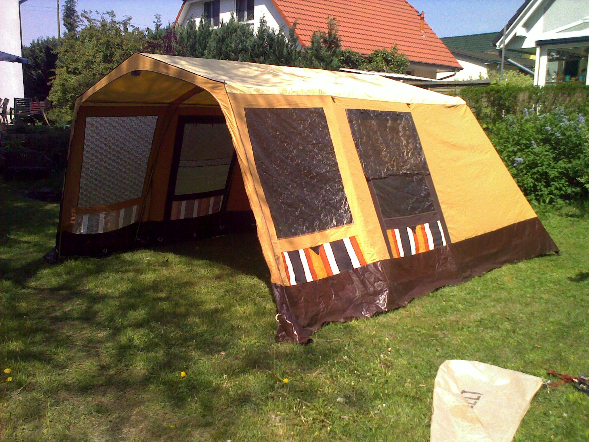 Das graue Vorzelt hatte ich schon. Das braune Zelt hab ich von Rüdiger bekommen.