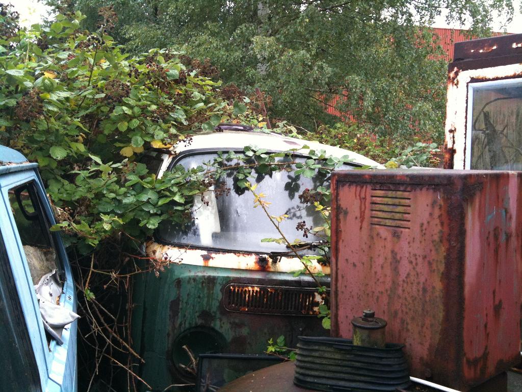 Tja, Dank Altautoverordnung durfte dieser Bulli nicht mehr vom Schrotter weg. Wäre eigentlich gut rettbar gewesen. War ein Typ 22 von 1970, stand vorher lange in einem Hinterhof in Nürnberg.