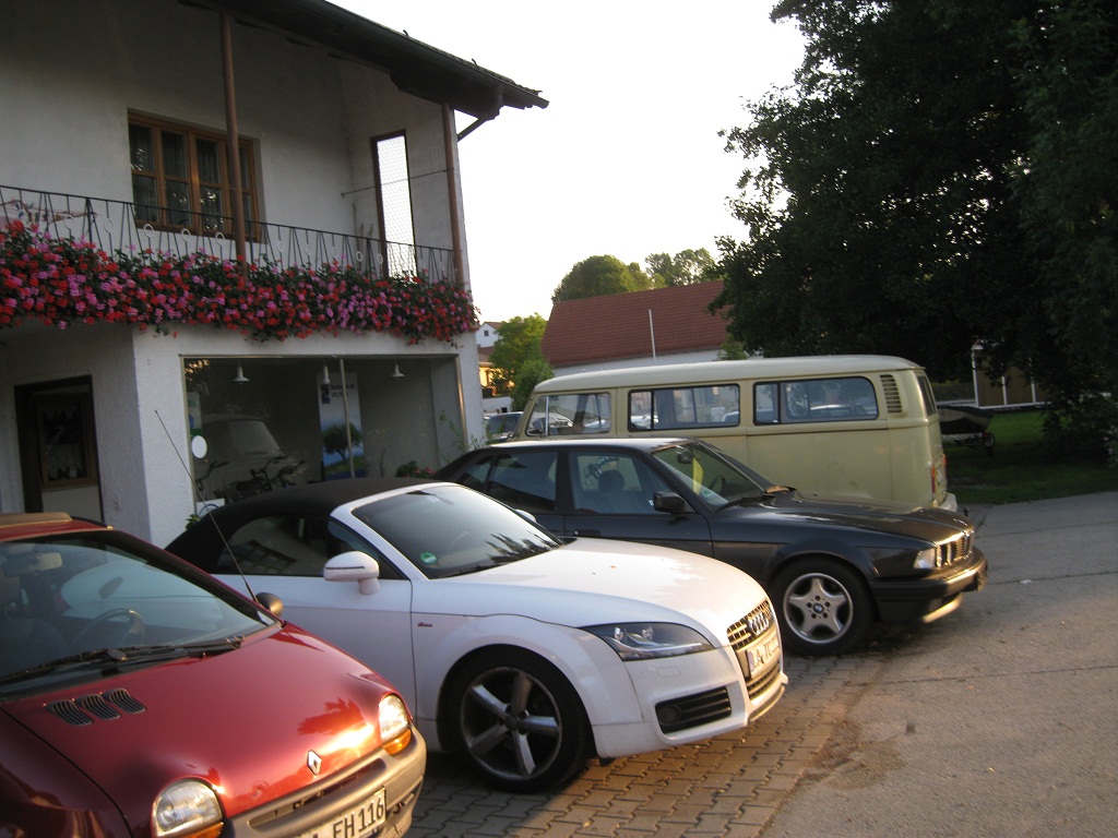 Auf dem Bild leider nicht zu sehen: Der hatte noch nen Anhänger hinten dran mit Fahrrädern - die man ja sieht - drauf - da hatte der T2 bei den Temperaturen über 30 Grad - gut zu schleppen.