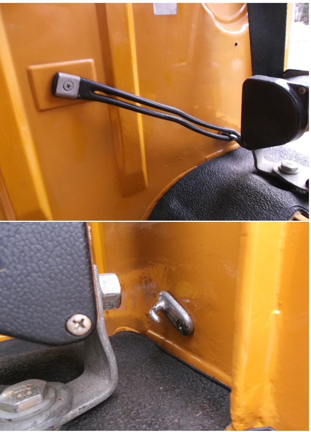 Genau, aber auch noch beim T2 a/b und zur Befestigung an der Trennwand gibt es dann noch eine Schelle sowie einen Haken. Oben das Gummiteil scheint mir der Anschlag rechts oben für die Fahrerlehne zu sein.