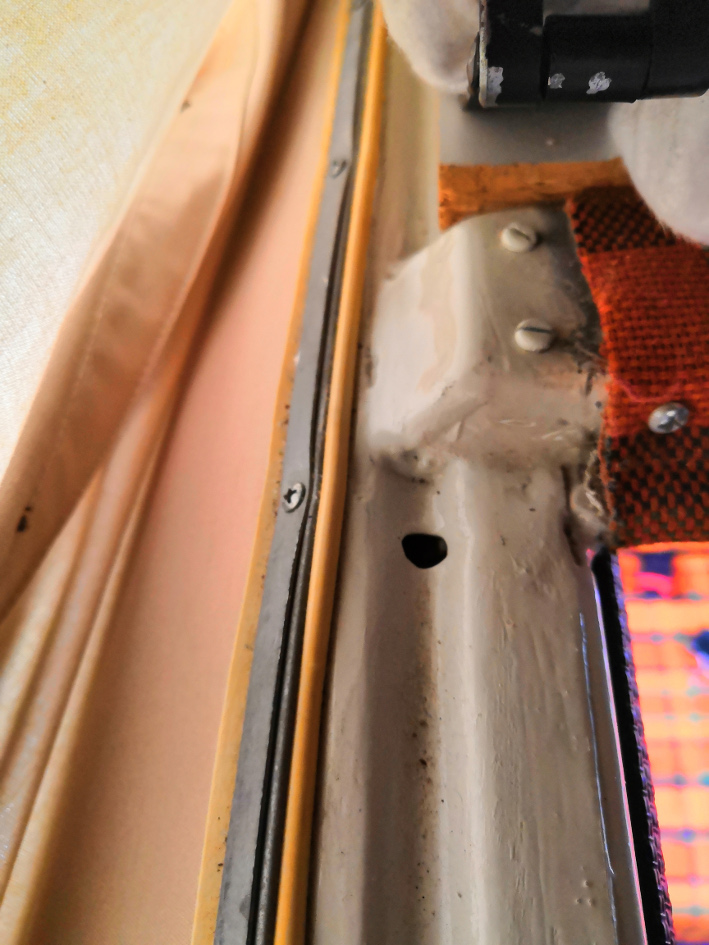Zur Verstärkung von unten wurde ein Hartholzrahmen gegen das Dach gesetzt, alles schön mit Kantenschutz versehen, letztlich um auch den Holzhimmel / Zeltbalg einzufassen.