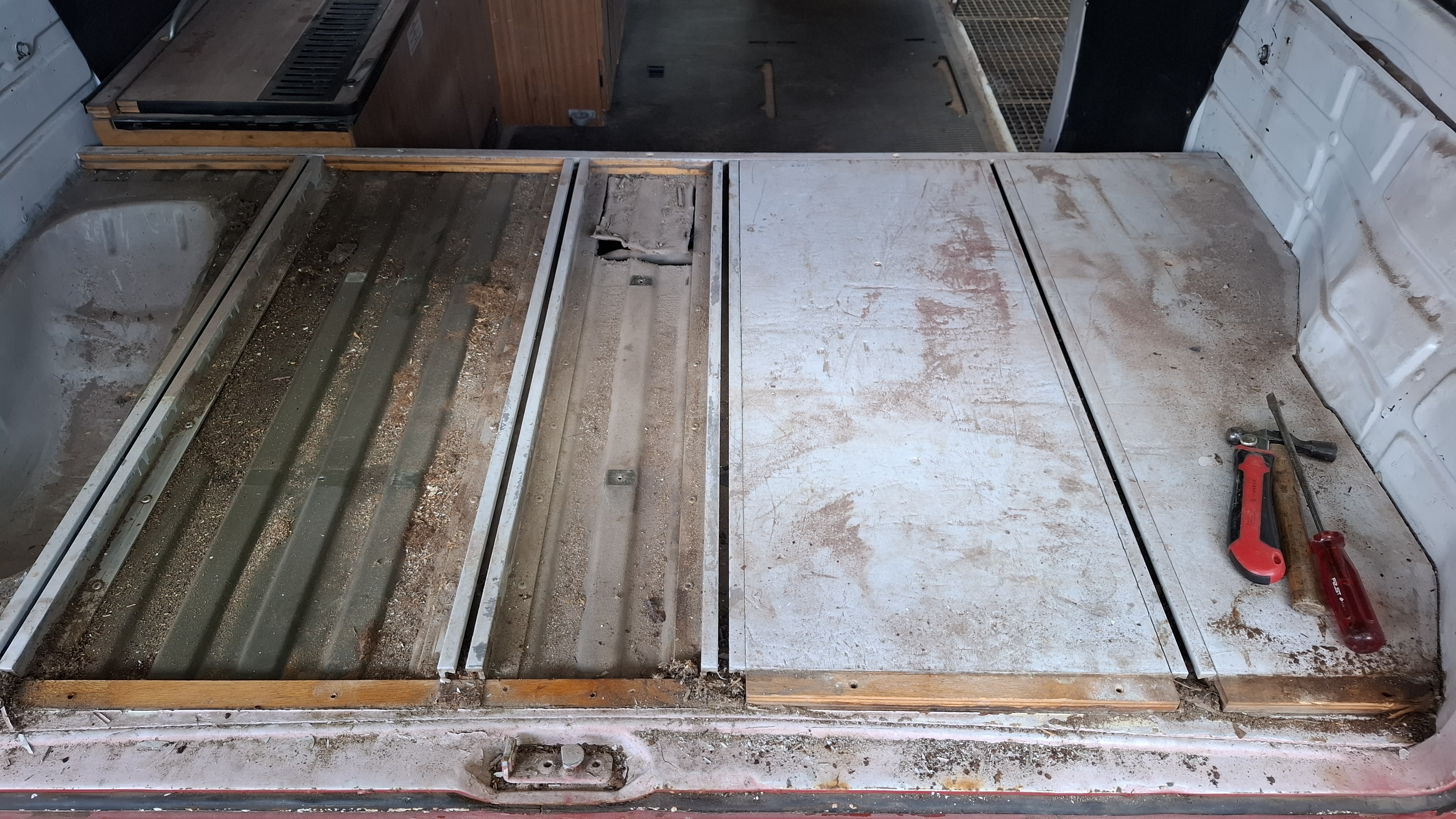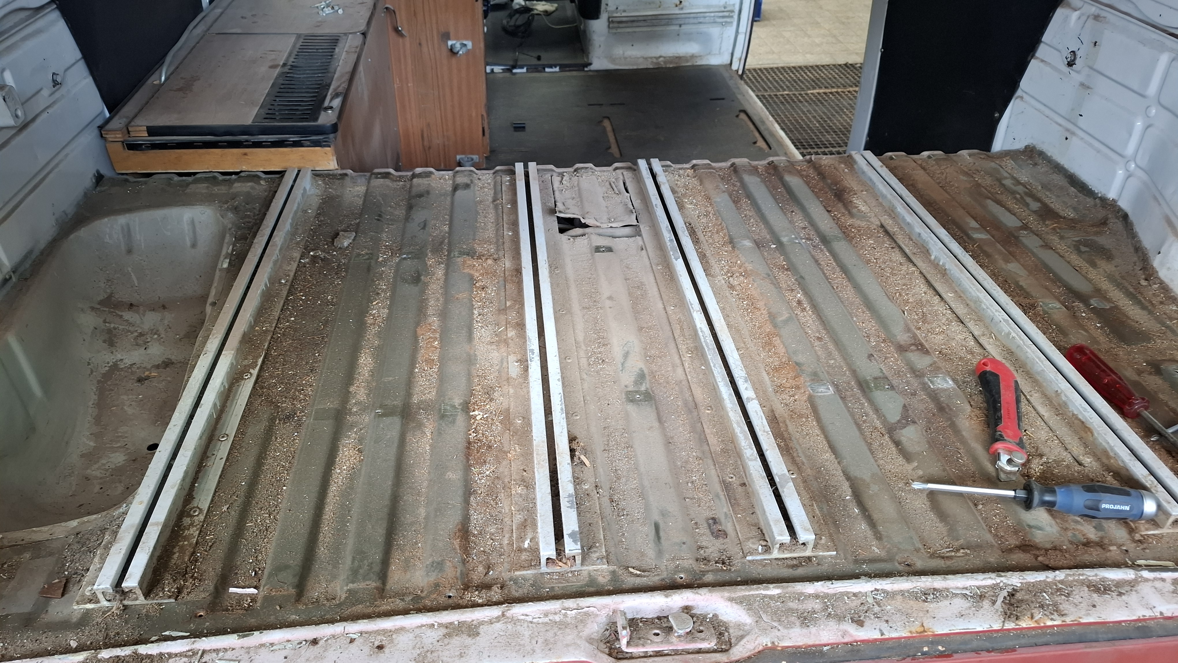 Kann mir jemand sagen, ob diese Platte über dem T2 Motorraum original Bundeswehr oder Westfalia ist? Die Schienen sehen mir nach BW aus. Das Holz könnte eine zurecht geschnittene Abdeckung von Westfalia sein. Hatten die sowas?