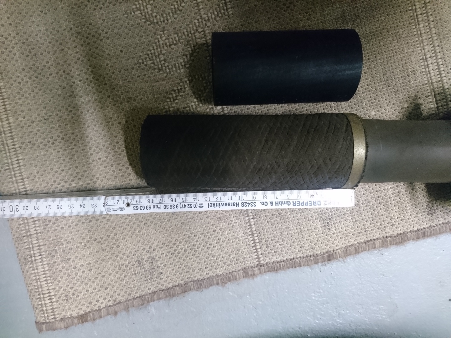 Ich hatte meinen, wenn ich mich richtig erinnere, bei Bus-ok gekauft. War ein Schlauch für Tankfahrzeuge, mit gelbem Streifen. Sitzt sehr stramm, da muss bei der Montage also schon etwas Flutschi mit drauf damit man nicht wahnsinnig wird.