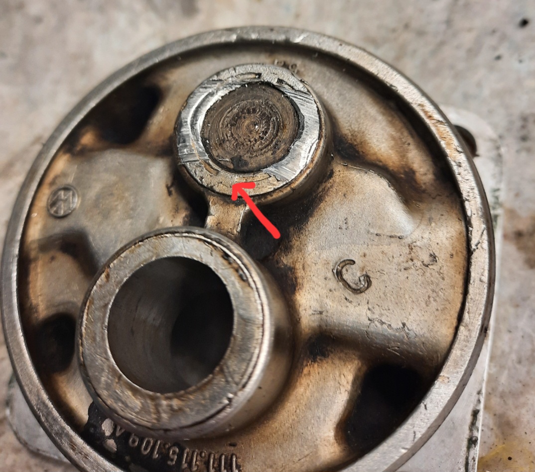 So. Hab die Pumpe gezogen. Ganz leicht gab's Kontakt. Hab an der Pumpe den kleinen Gusssteg weggemacht (Pfeil) und sicherheitshalber auch die Schrauben einzeln gelöst und auch etwas am Kopf gekürzt. Jetzt läuft alles. Hab zwischenzeitlich auch eine Shadek Pumpe bekommen, die ist tatsächlich nicht ganz so tief wie original Pumpe. Die hätte so gepasst. Auch wenn es nur 0.6 mm weniger sind.