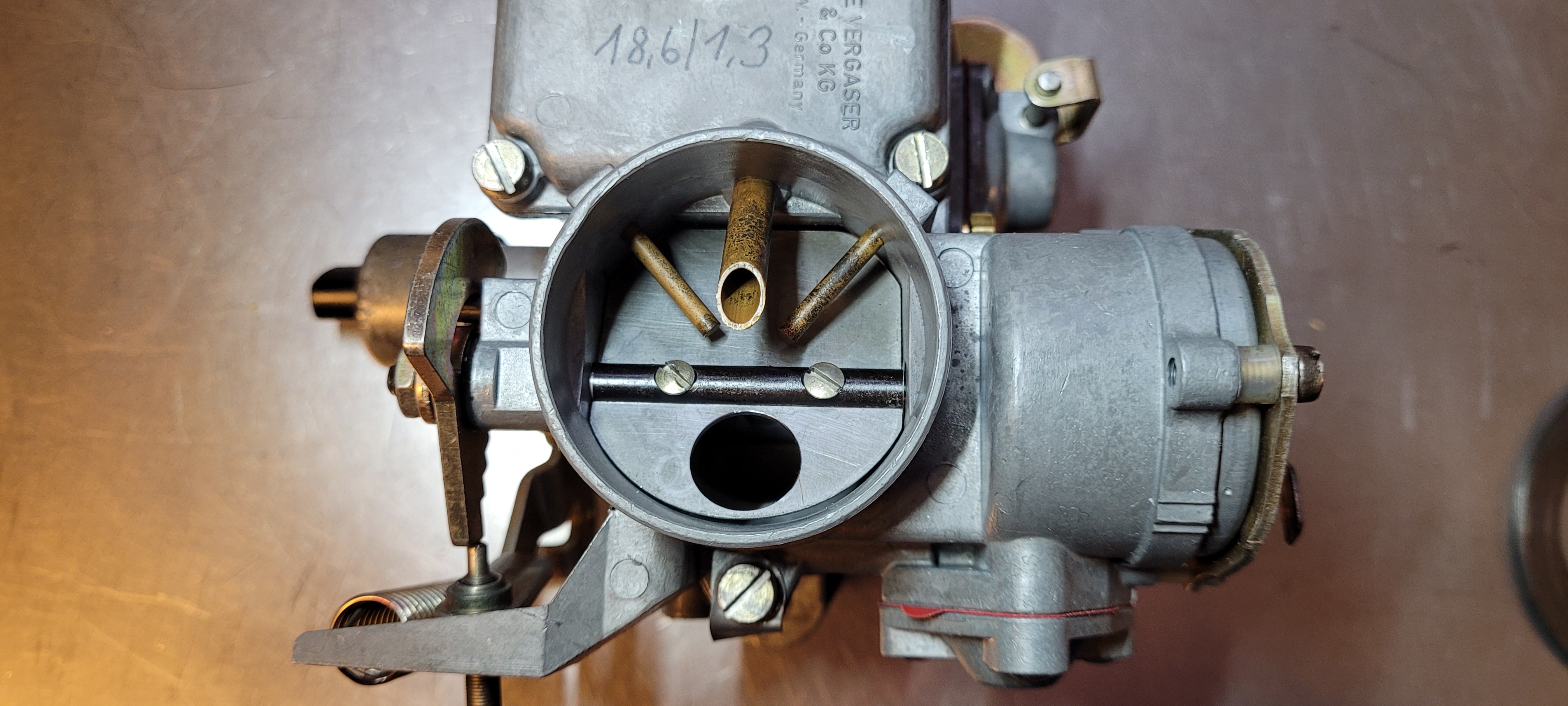 BTW: Die Starterklappe hätte eine 10 mm Bohrung erhalten gehabt, da sonst im Kaltstartbetrieb der Motor viel zu fett läuft und abzusaufen droht. Ein Bild habe ich gerade nicht zur Verfügung, Werde mal nachschauen und ggf. nachreichen.