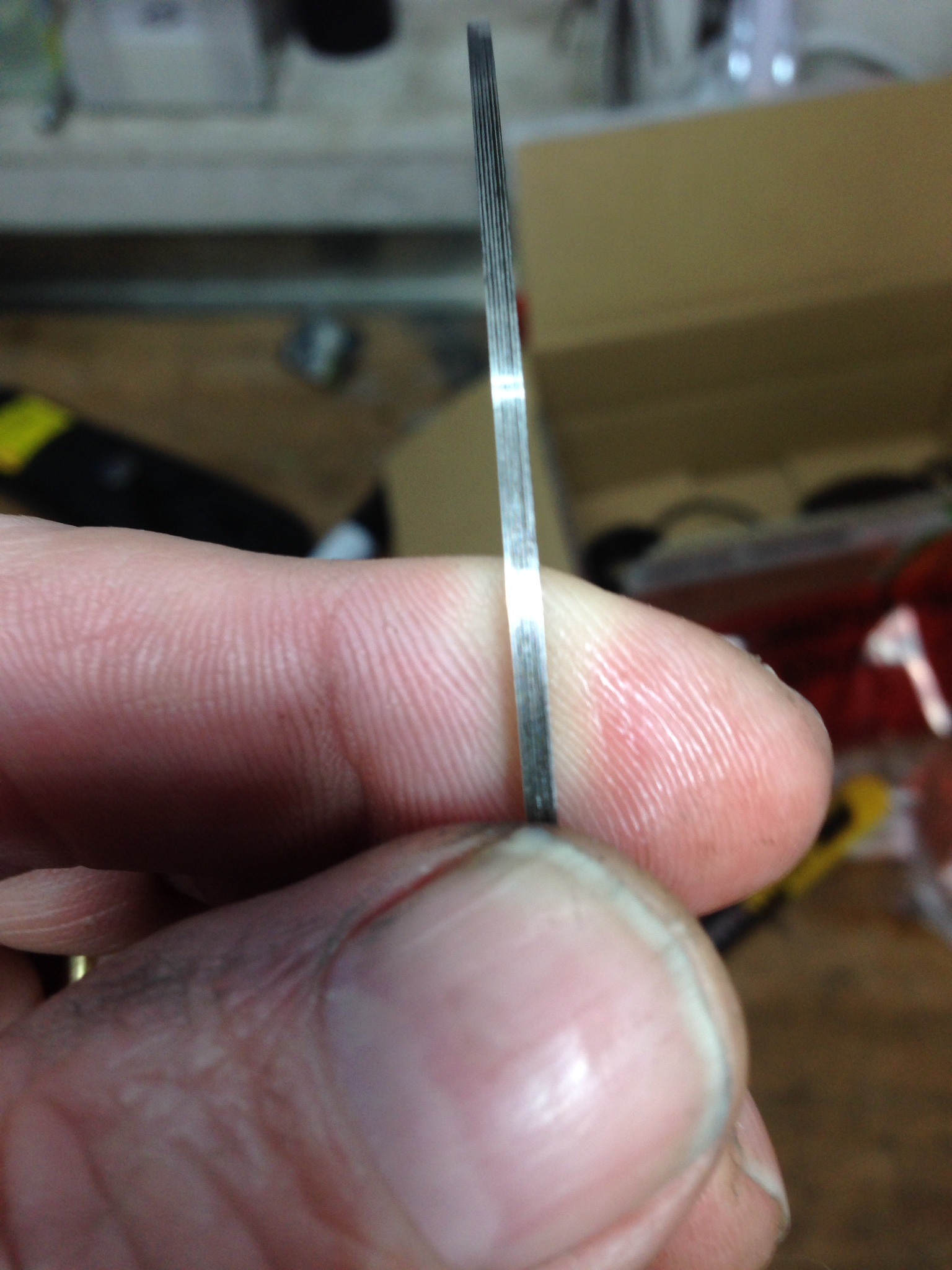 Oben im Bild ist schön zu sehen, wo der Ring schon trägt (hell), Die dunklen Stellen sind die Riefen der Bearbeitung die irgendwann komplett weggeschliffen sind.