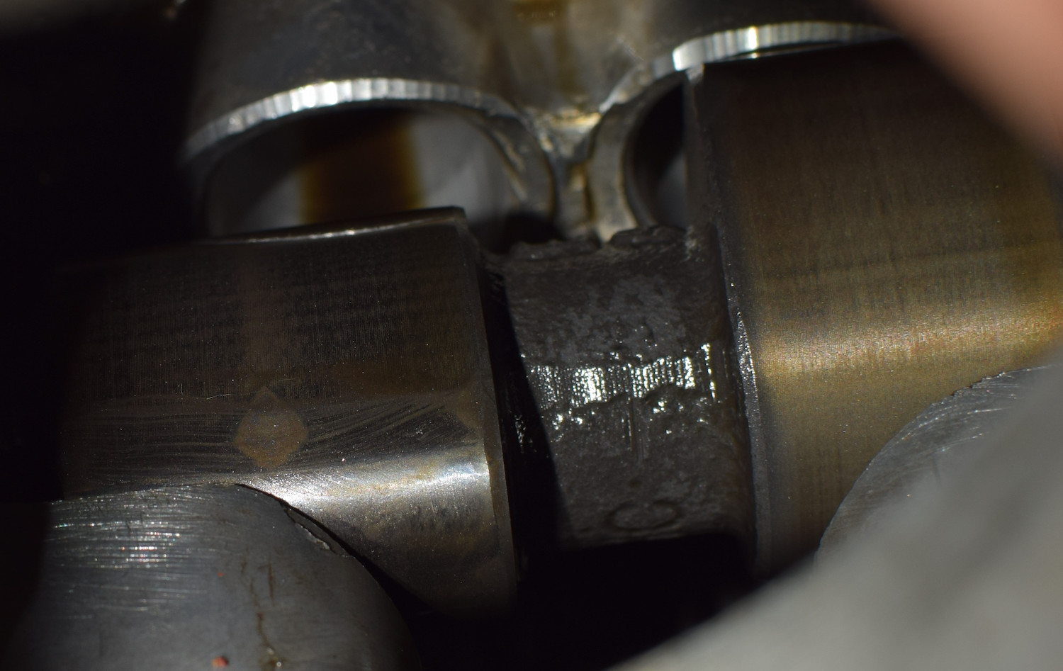 Alles was nicht metallisch glänzt ist aus Gummi / Dichtungsmaterial. Zerbröselte Vetilschaftdichtung, ok? Die kleinen Metall-partikel / -röllchen machen mir etwas Sorgen, die sehen wie abgehobelt aus.