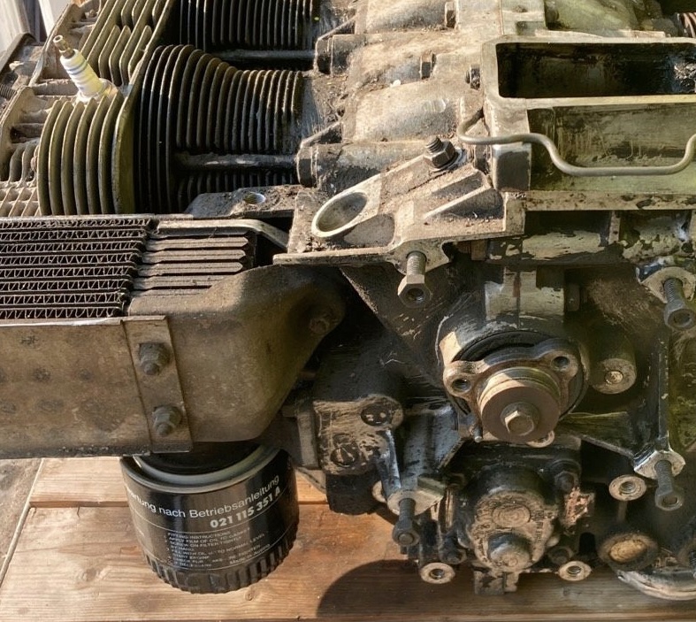 Der Ölkühler selbst ist trocken der Öldruckschalter auch, ebenso konnte ich an der Zündverteilerwelle keine ölspuren finden. Die Stößel Schutzrohre sind an den Dichtungen auch trocken und liegen im Grunde eher in einer anderen Richtung.