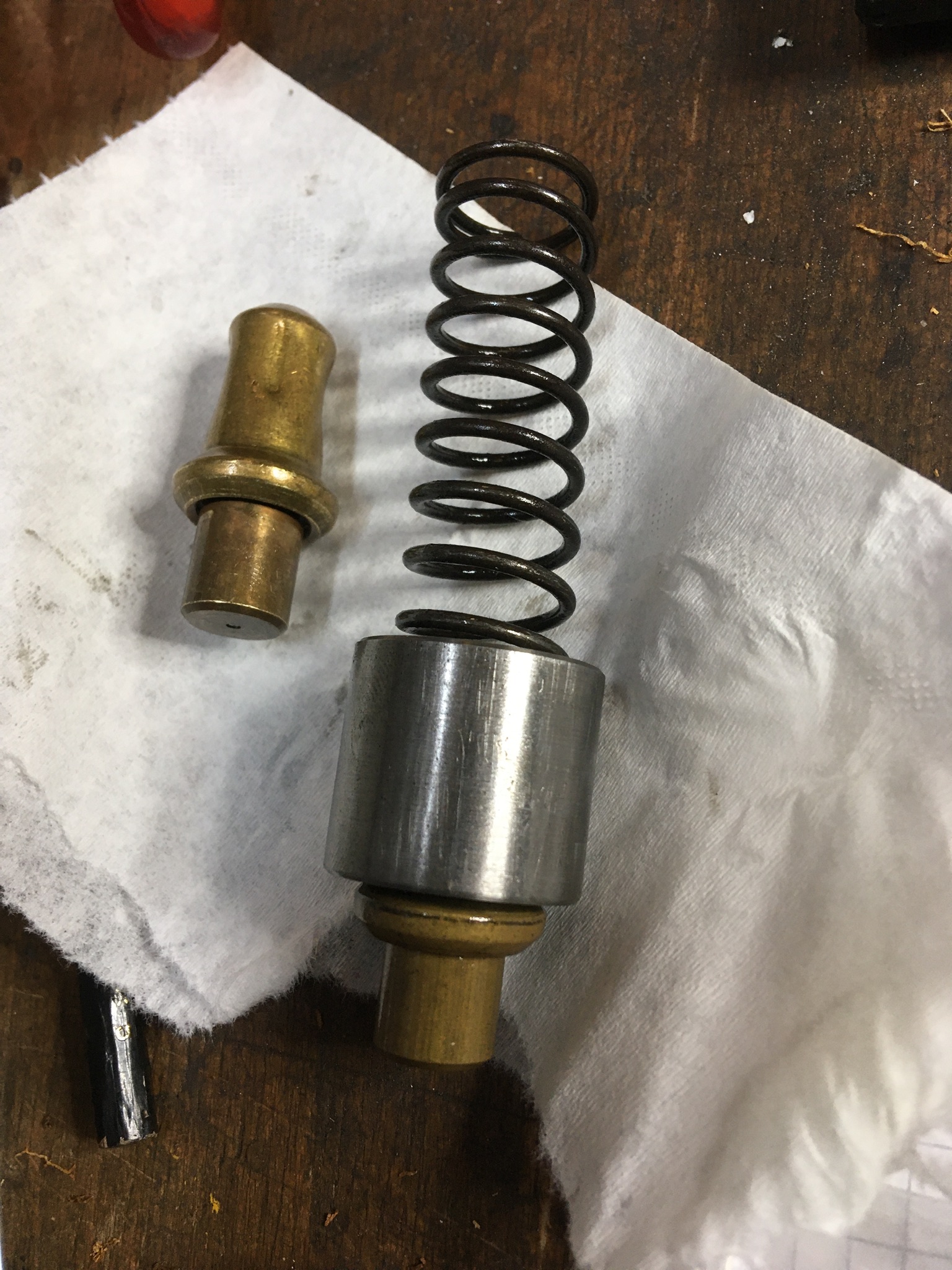 Zuerst habe ich das 83er Element fehlerhaft ins TAD Blockthermostat eingebaut. Die U-Scheibe am Grund der Bohrung hat sich während der Montage wohl unbemerkt quer gelegt und alles verklemmt.
