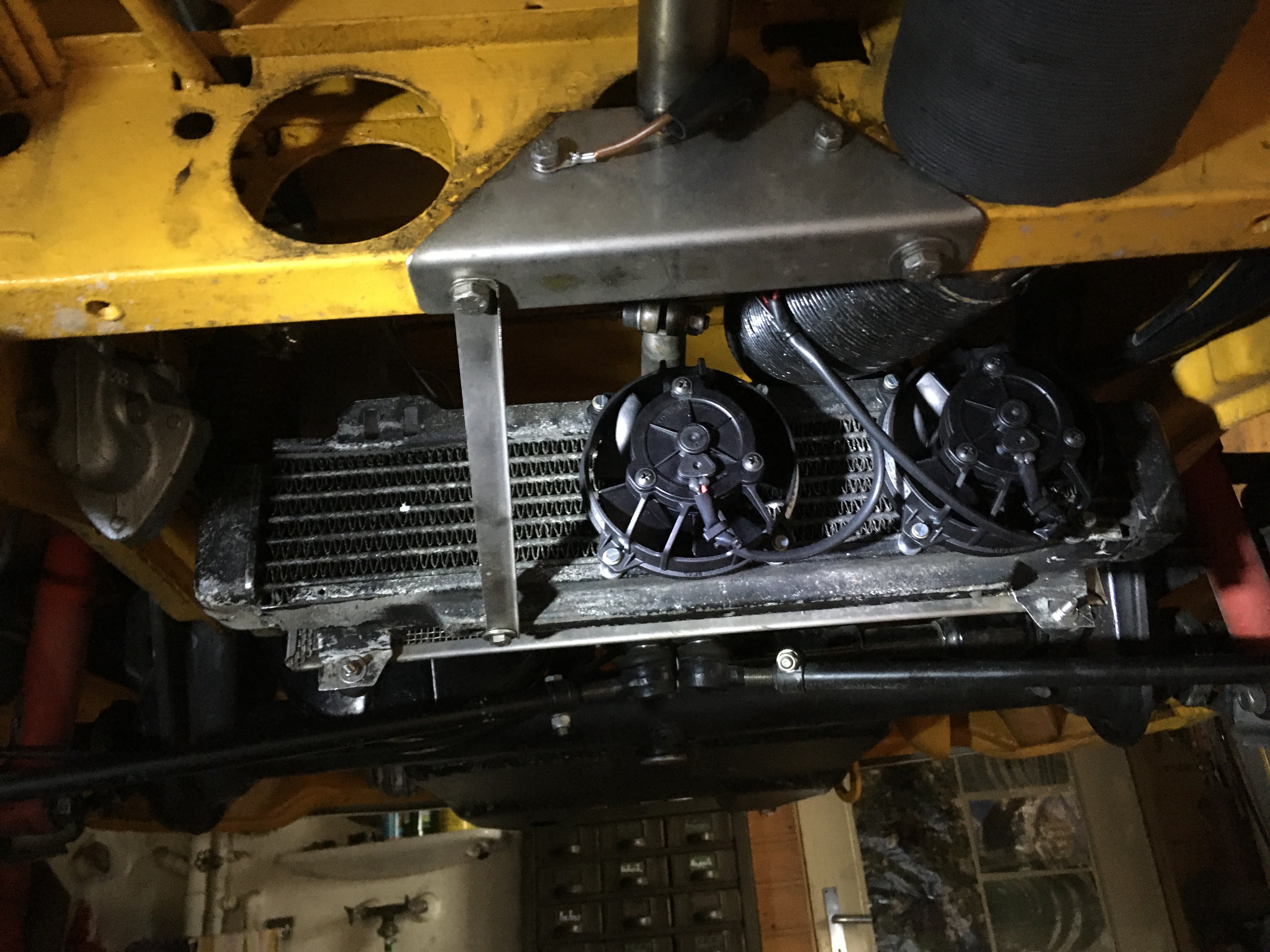 Zur Sicherheit hab ich meinen Kühler mit 2 Lüftern ausgestattet und über einen Thermostat Schalter geregelt.