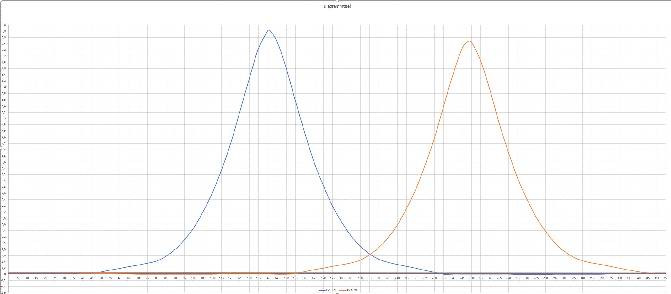 Um das ganze in einer Grafik auch vergleichbar zu machen, habe ich den Überscheidungspunkt von EV und AV auf 180° geschoben.