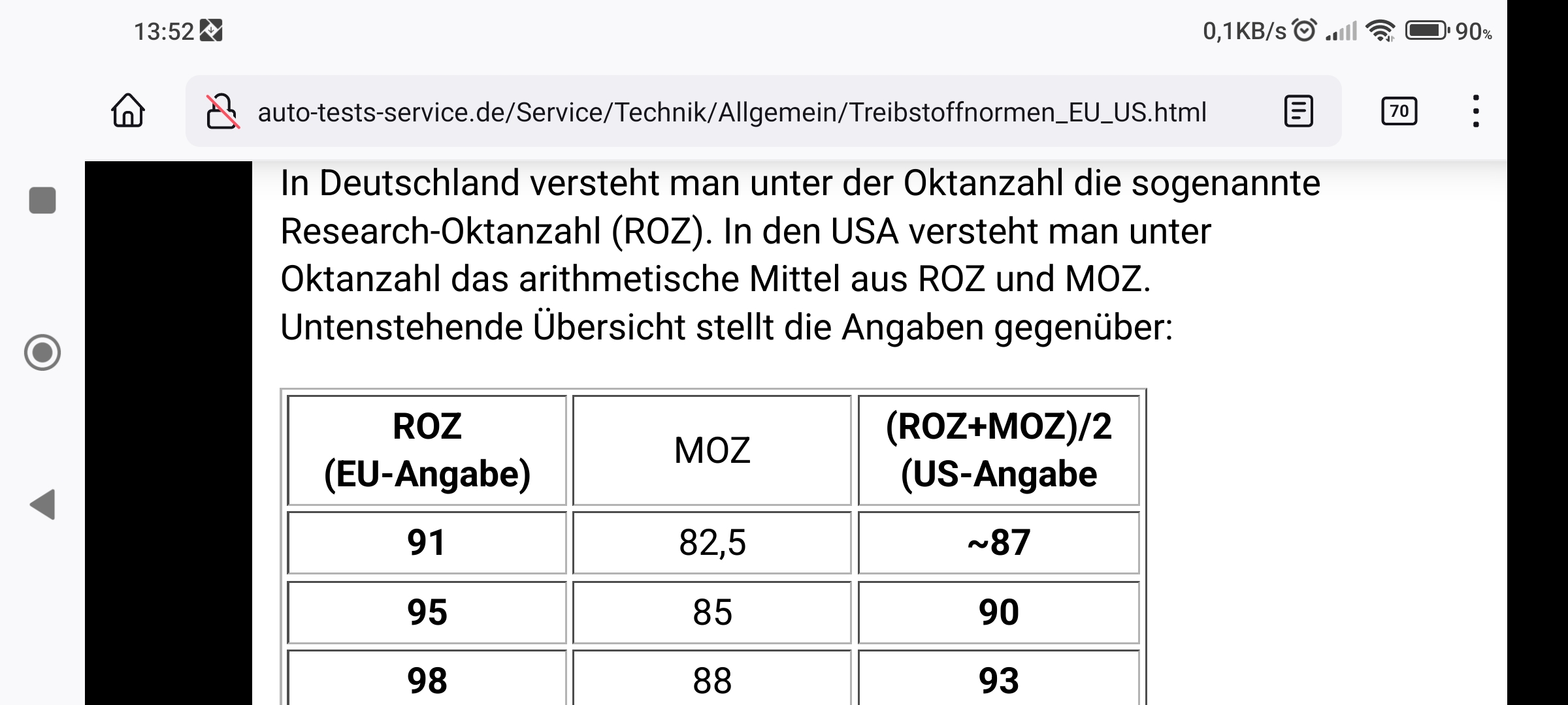 Ich wollte nur noch mal darauf hinweisen das in USA die Oktanzahl anders bestimmt wird, wenn ich mich noch recht daran erinnere.Ich weiß nun nicht was der werte Herr Raby angegeben hat