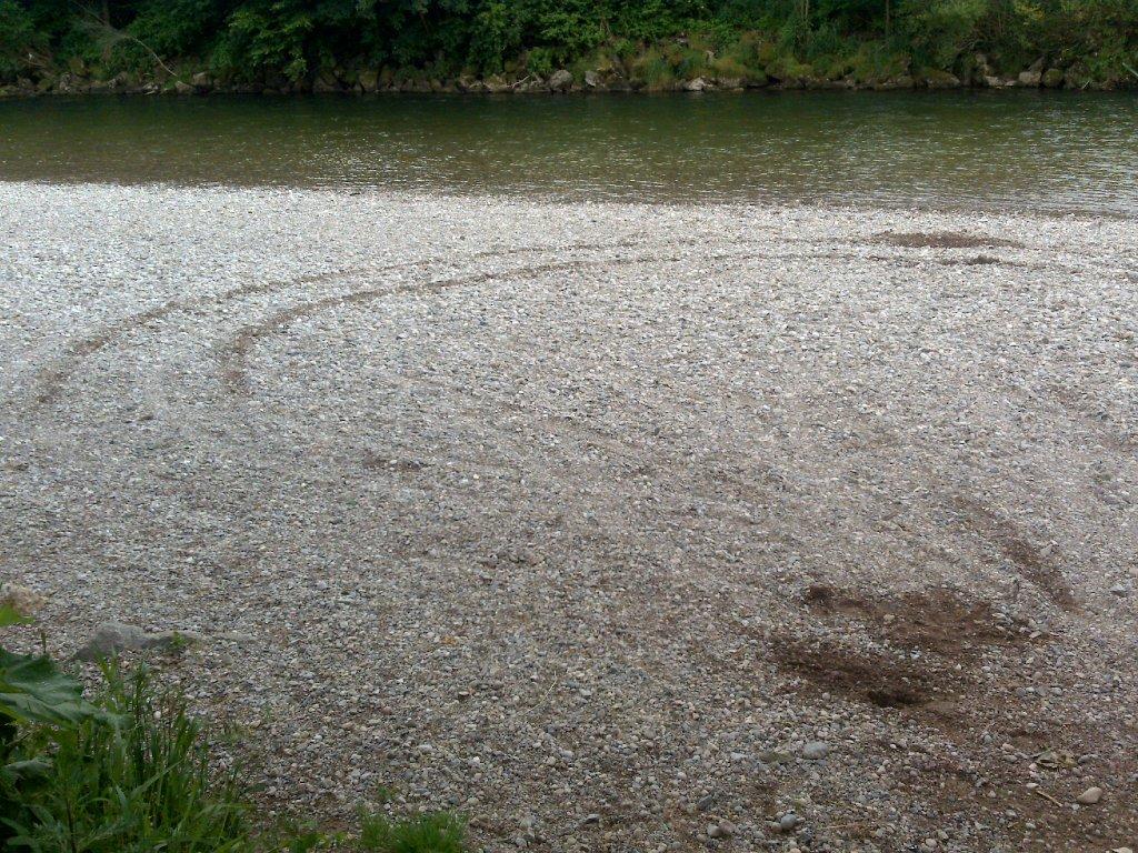 beim dunklen fleck in der nähe des flusses bin ich hängen geblieben, und den ganzen bogen hat er durchgedreht, aber schön langsam bin ich weg gekommen...