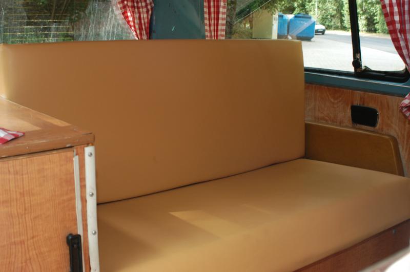 Zum Bezugstoff: also meiner ist kein Westi, sondern ein Kombi in den ich eine Eigenbau-Light-Camperausstattung bastle (Bett + Kinderbett + Tisch + Stauraum unterm Kinderbett). Die Frau des Vorbesitzers hat aus einem blauen Karostoff schöne Vorhänge genäht, die prima zum blau des Busses passen, und im selben Stoff möchte ich die Bezüge machen. Dass das nicht original ist weiß ich eh, aber es ist eh kein "richtiger" Camper, insofern bin ich da recht schmerzfrei ... schön muss es sein :yau:
