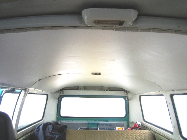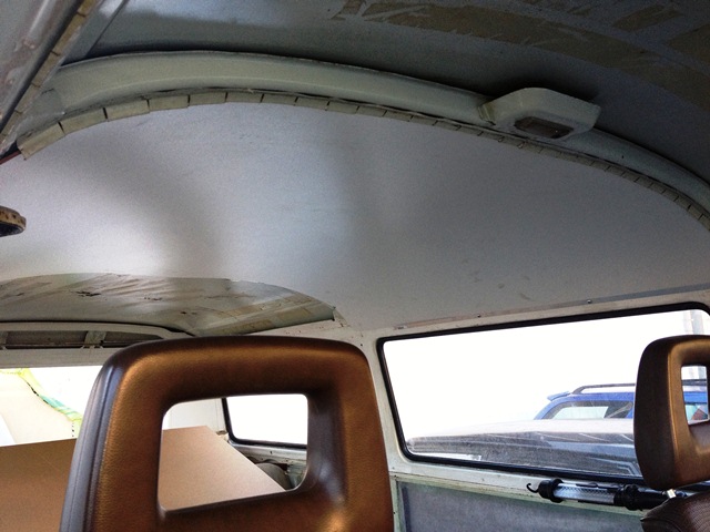 ich habe vergangenes Jahr auch meinen Himmel komplett erneuert. Ich habe auch einen Himmel aus 3mm Sperrholz geschnitzt. Habe ihn dann mit weißem Kunstleder beklebt. Das sieht dem Original beim Westy Berlin sehr original aus. Ich hatte anfangs auch die hässlichen Biegekannten in den vorderen seitlichen Ecken beidseits.