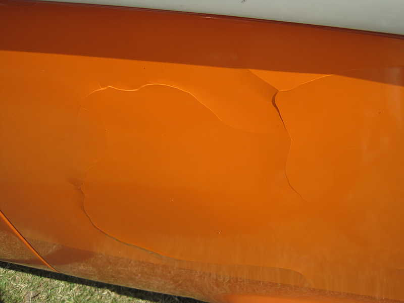 Also bei unserem sieht man nach 3 Jahren einige kleinere Spachtelstellen stärker als gleich nach der Lackierung.