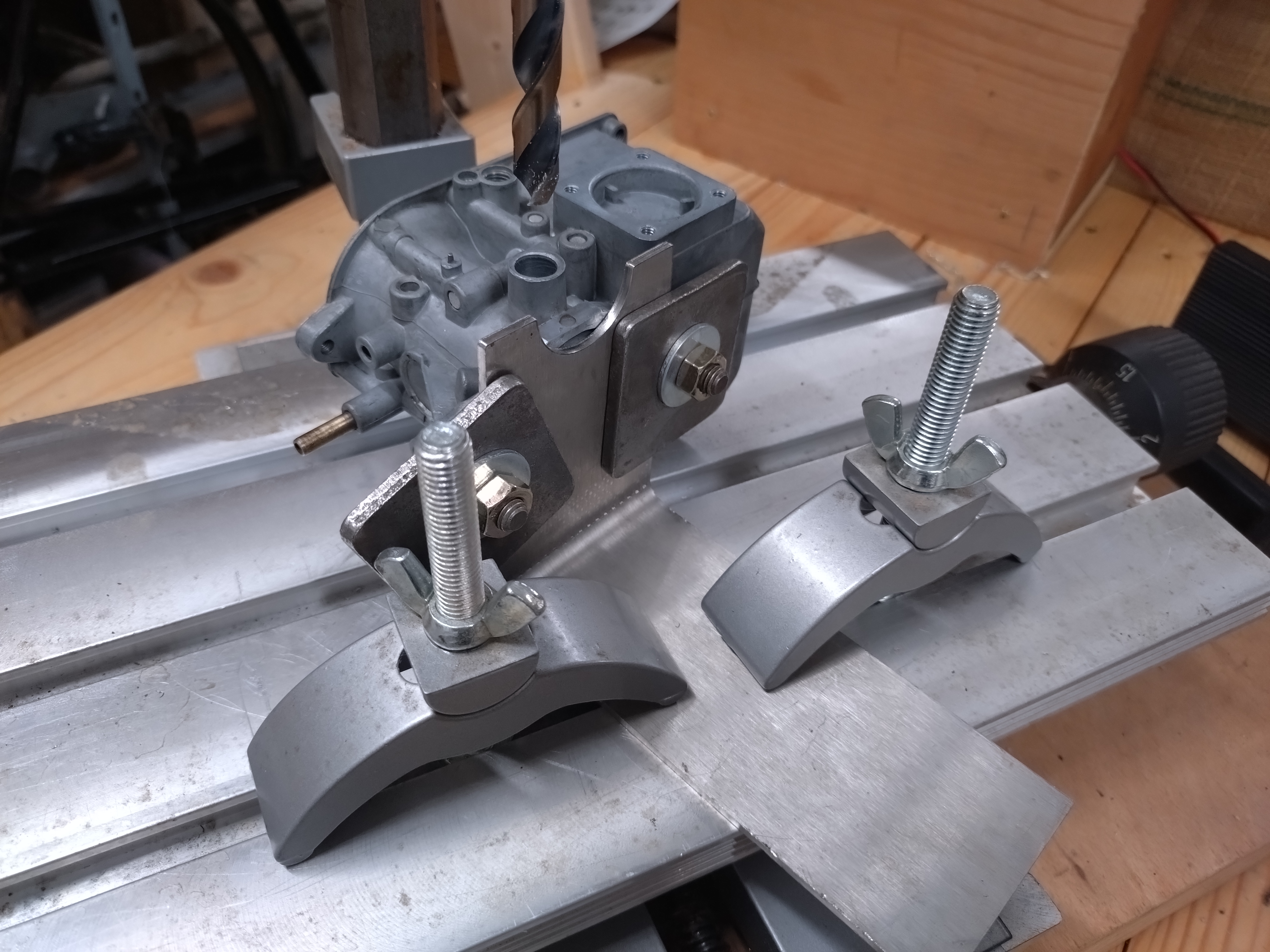 Den Vergaser selbst noch zusätzlich runterspannen und einen Fräser statt eines Bohrers verwenden.