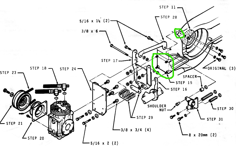 7 definitiv die Aufnahme für den "York Kolbenkompressor" der Klimaanlage, welcher über einen Keilriemen angetrieben wird. Dafür wurde eine besondere Riemenscheibe eingesetzt.
