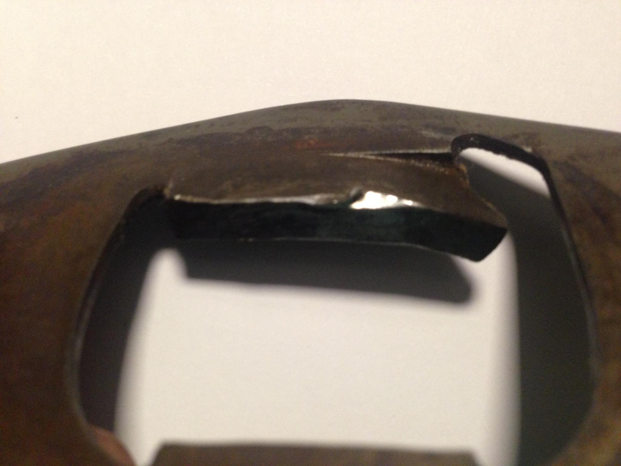 Der "Pickel" könnte vorsichtig weggefeilt/geschliffen werden, aber ich glaub da mach ich eine neue rein.