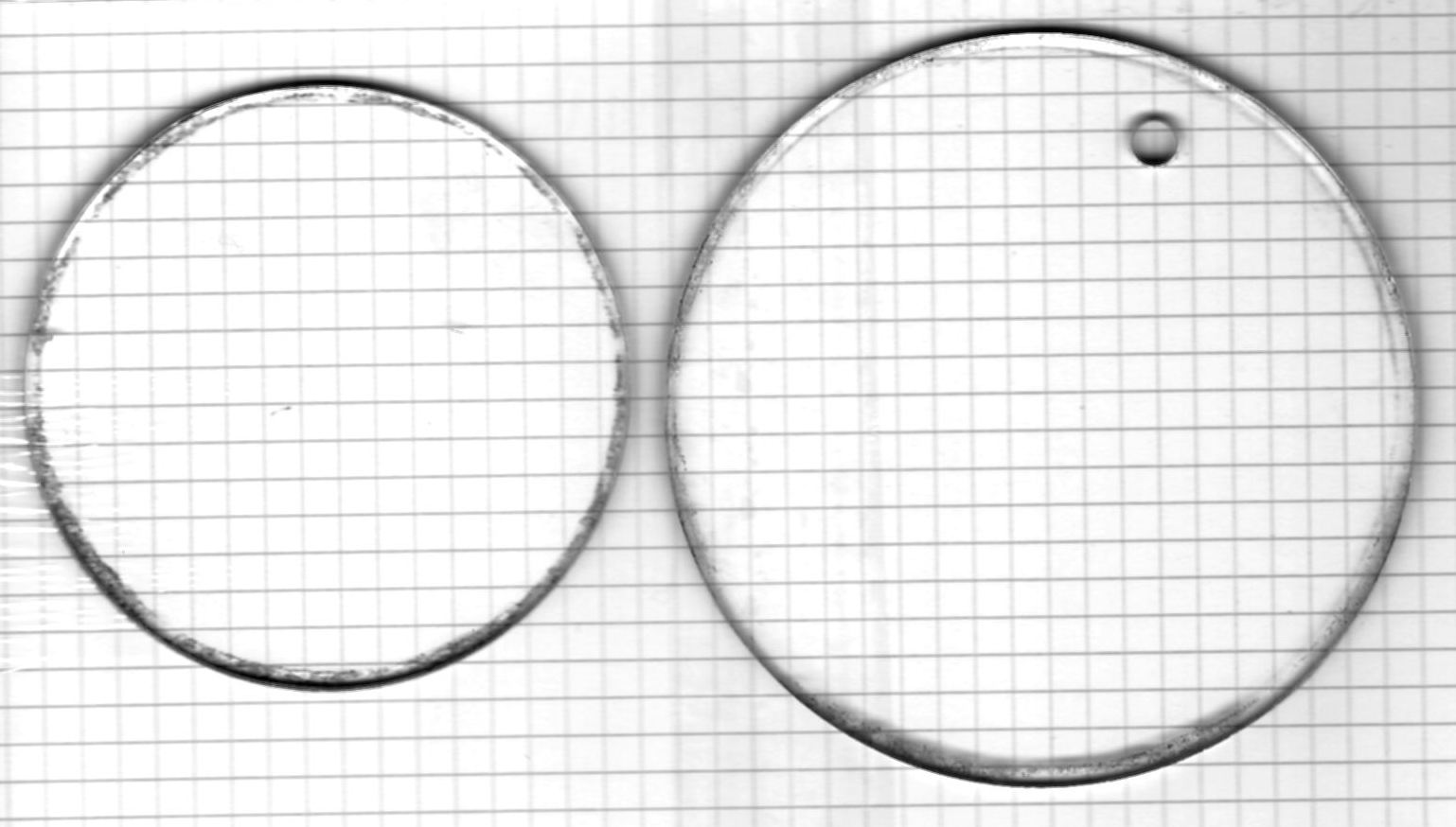 Mitgenommen habe ich die Teile, um sie scannen zu können. Das hinterlegte Karopapier hat ein Gitter von 5x5 mm.