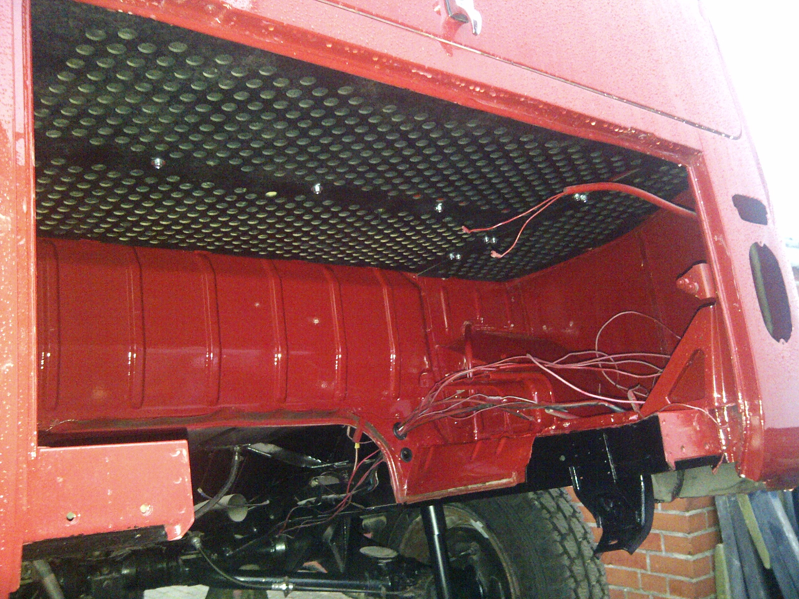 Paßte perfekt. Ich hatte ebenfalls die alte Dämmwolle von VW drunter und habe die mit Mineralwolle erneuert. Das ganze dann noch schwarz gesprüht und wieder rein damit: