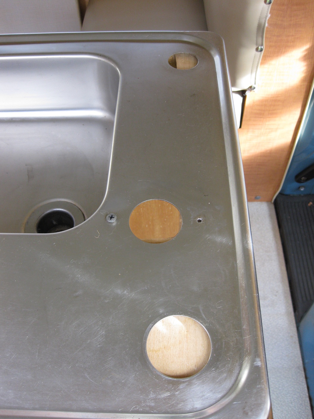Ich bin also auf die Suche gegangen nach einem Waschbecken. Und da die Edelstahlbecken deutlich robuster sind, fix eins in den USA bestellt. Sauteuer, aber dafür echt guter Zustand.