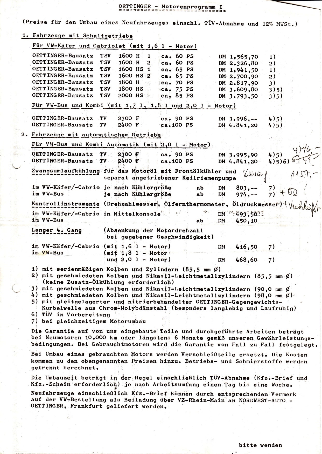 Aber sei es drum: Oettinger ist eigentlich nur noch Mythos :nighty: . Nach meinen Recherchen war die Langlebigkeit dieser Motoren nicht wirklich abgesichert , daher eben unter anderem auch die Zusatzölkühlung. Dieser Motor wurde schließlich auch an Leute verkauft die diesen Motor eben auch gefordert haben - zum Spass zum Sport...ein bischen sehr Luxus war das schon :wink: ..... Von ziemlich ausgenudelten Exemplaren auf dem Teilemarkt der Neunziger Jahre habe ich insbesondere aus der Käfer-Scene gehört. Dieser Motor ist mit heute marktgängigen Teilen durchaus 1:1 neu und qualitativ höherwertiger aufbaubar. Allerdings wirds da eben auch extrem schnell teuer.