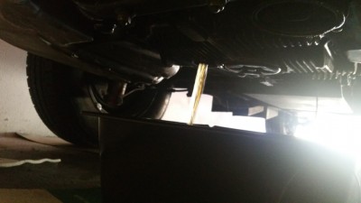 Erstmal raus mit dem Mist: Der Motor lies sich nur sehr schwer drehen. Der Grund war, das auch ein Zylinder vollgelaufen war: Jetzt neues Öl und einen neuen Filter rein, denn der war ja auch voller Benzin.
