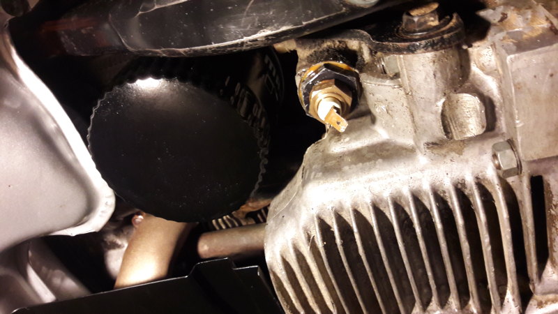 Hier könnte man das ganze am Öldeckel anbringen. Da hängt nur das Kabel am tiefsten Punkt und man muss den Ölpeilstab ca. 2cm Kürzen.