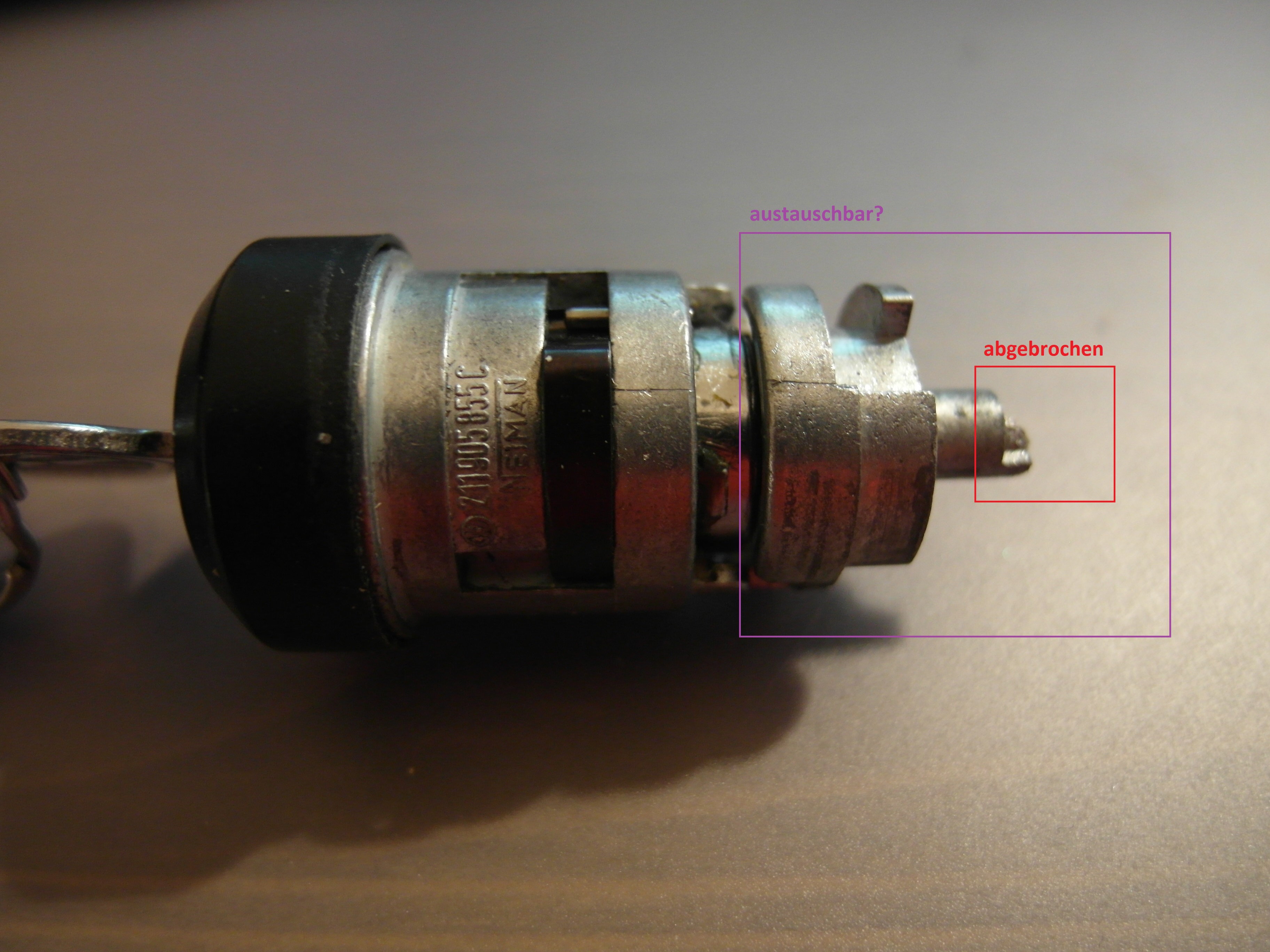 Bei mir ist beim Zündschloss leider die Führung für den Anlassschalter abgebrochen. Die abgebrochenen Teile habe ich noch. Ich könnte versuchen diese mit 2K-Kleber wieder zu reparieren. Was mir allerdings lieber wäre ist, das ganze hintere Teil zu ersetzen. Weiss einer, ob man die Schlosser auseinanderbauen kann?